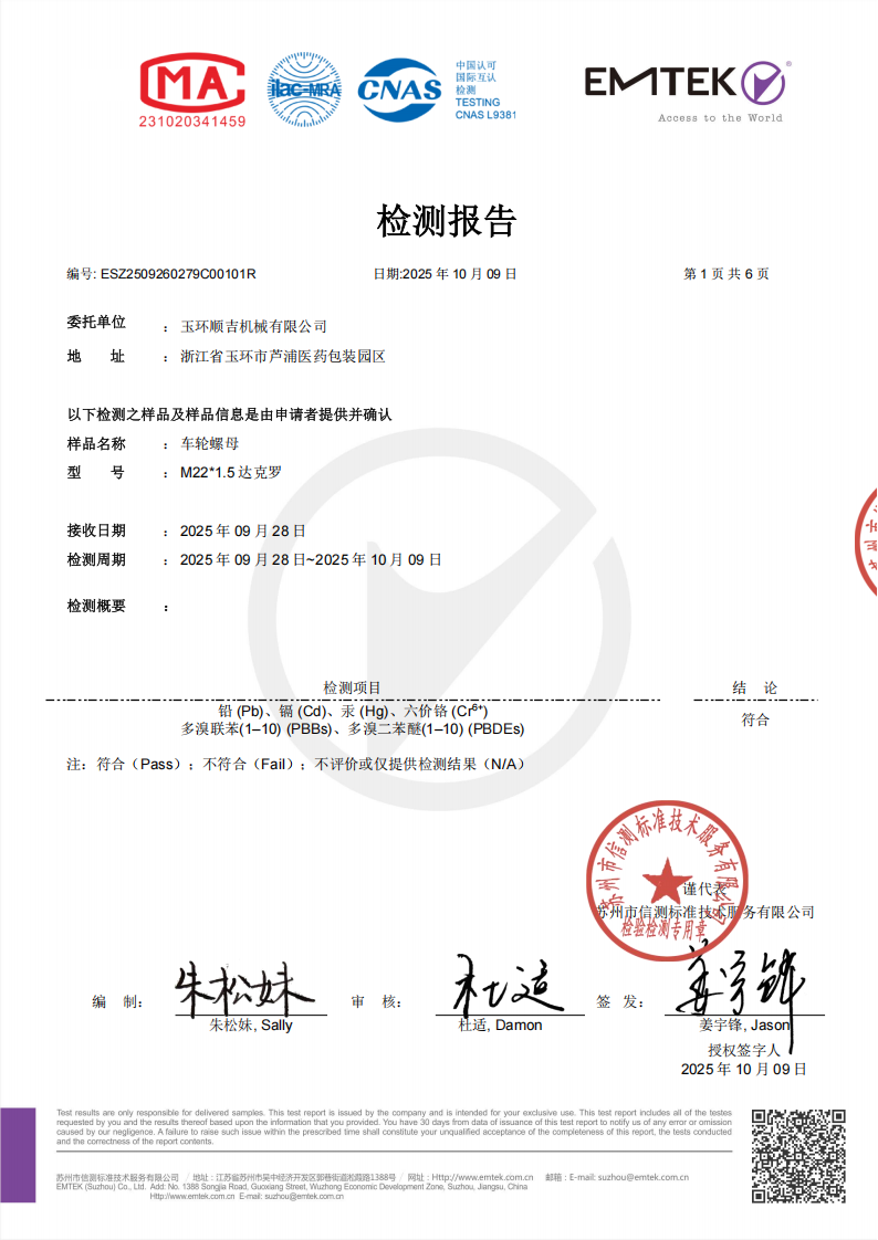 • CNAS Certification for Environmental Prohibited and Restricted Substances in Dacromet Surface Treatment